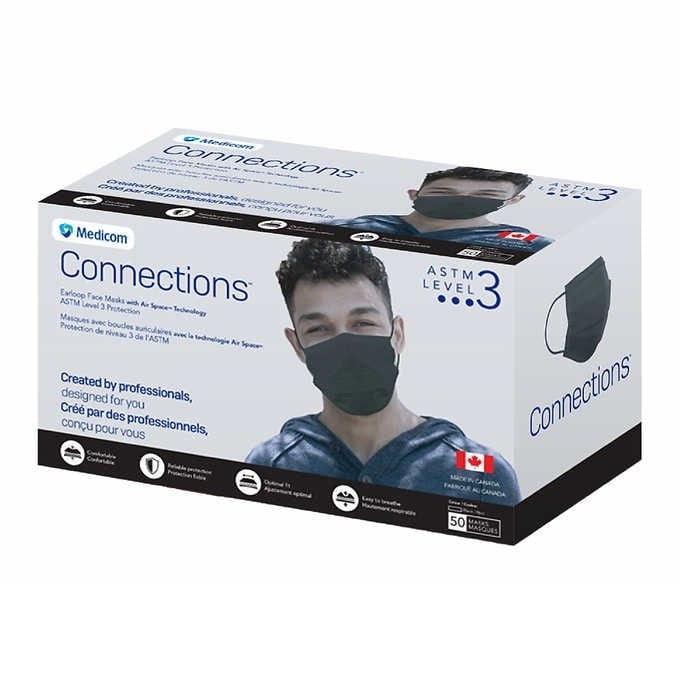 Lightweight and breathable disposable face mask that is comfortable and highly effective. This mask complies to ASTM level 3 standards and is made in Canada. 3-ply and latex-free. **50/box**