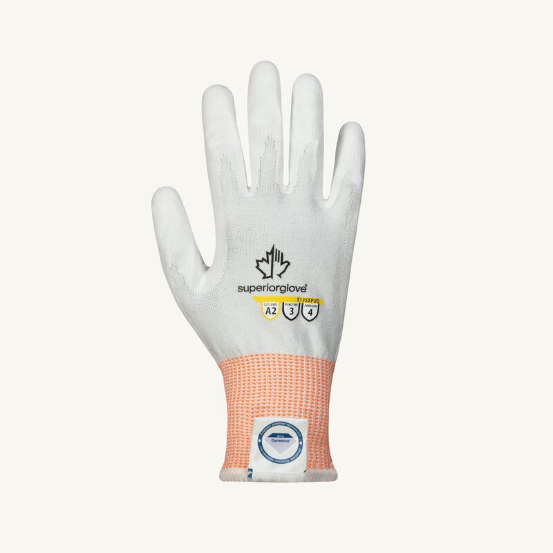 Superior Touch® S13SXPUQ - strong yet lightweight Dyneema® gloves that provide cut and puncture resistance. 360° ANSI Level A2 cut resistance and ANSI Level 3 puncture resistance. Dyneema® is lint-free and provides excellent abrasion resistance. Polyurethane palm coating offers superior dexterity and tactile sensitivity while at the same time providing comfort and grip. Snug fitting, breathable, and flexible gloves that are ergonomically shaped. High dexterity and flexibility. Ideal for glass handling, these non-marring gloves will not leave residue, smudges, or fingerprints. **Minimum order 12 pairs**
