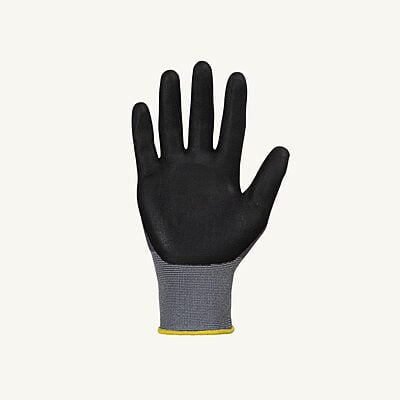 Micropore nitrile palm coating does not absorb oils and liquids so hands stay dry. Fine-gauge nylon knit is soft, flexible and hard-wearing. Craters act like tiny suction cups to improve grip in wet and oily conditions. 225% greater abrasion resistance than the leading competitor. ANSI Level 6 Abrasion resistant and ANSI Level 2 Puncture resistant.