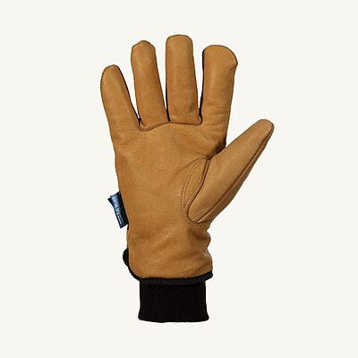 Drivers Glove, Thinsulate™ Lined, Knitwrist Cuff Puncture-resistant, oil and water repelling gloves for work in extreme cold (-30°C / -22°F). Engineered with specially selected Thinsulate™ materials to provide exceptional warmth while maintaining mobility. High tensile-strength goatskin for outstanding abrasion resistance and ANSI Level 4 puncture resistance. A knitwrist turtleneck cuff extension further locks in warmth. Goat-grain leather treated with Oilbloc™ provides unbeatable oil resistance. Waterstop™ treated leather ensures excellent water, oil, and stain-repellent properties. This driver style glove slips on easily and has elastic backs for snug fit.