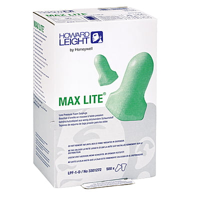 LPF-1 HONEYWELL Howard Leight Maximum Lite Low-Pressure Foam Earplugs, Bulk - Box Ideal size for workers with smaller ear canals Low pressure polyurethane foam expands gently for comfortable long-term wear Contoured T-shape for easy handling and wear Smooth, soil-resistant skin prevents dirt build-up Available in poly or paper bags Attenuation tested in accordance with ANSI S3.19-1974