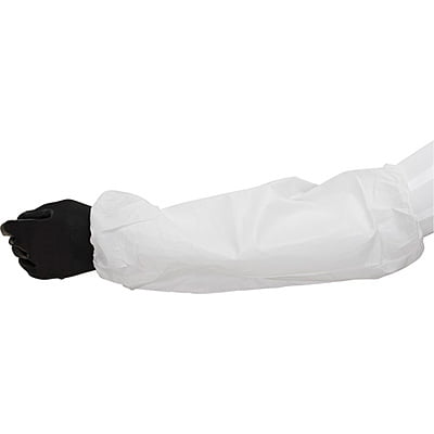 Zenith white microporous 18" long sleeves. Microporous film laminated to a polypropylene substrate. Offers protection against liquid, dust and light chemical splashes. Can be used in dry and wet work environments. Elastic at both ends. Sold per pair. *Minimum 50 pairs*