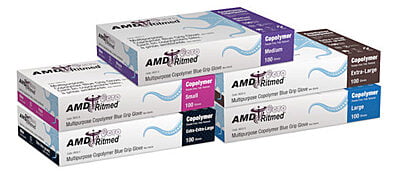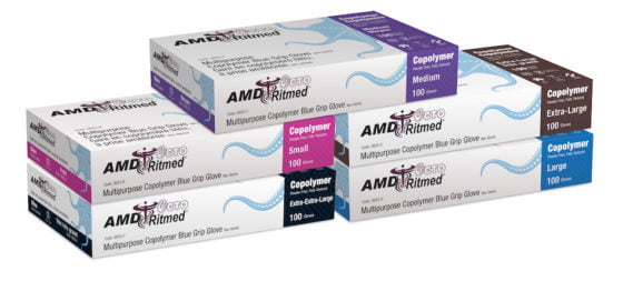 AMD Ritmed® Octo™ multipurpose copolyer powder-free gloves. Stretchy, textured and lightweight copolymer (latex vinyl) gloves with tapered cuff provide a snug fit. Ideal for tasks that require a high level of tactile sensitivity.