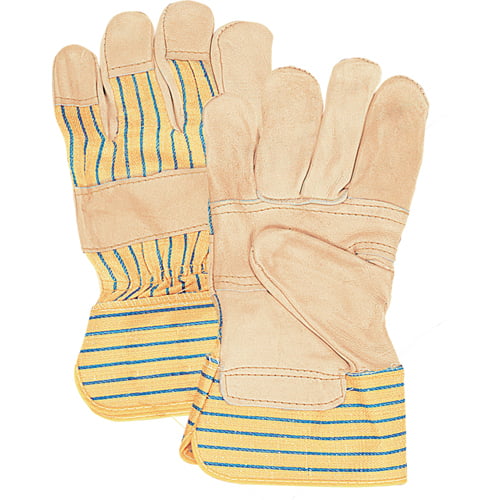 Zenith Safety Products - Fitters patch palm gloves, grain cowhide palm, cotton inner lining. Smooth grain cowhide leather construction. Superior abrasion resistance. Excellent comfort and durability. Absorbent cotton-lined palm. Resists oil and water absorption better than split leather. Patch palm design delivers added savings. Full leather-tipped fingers and knuckle strap provide increased protection. **Minimum 10 pairs**