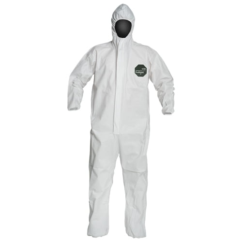DuPont ProShield® 50 white microporous coveralls. Features a zipper front, hood and elastic wrist and ankles. One of the most economical protective garments available today, with similar performance to many higher priced alternatives. Made from microporous film, ProShield® 50 garments help protect workers who face on-the-job exposure to a range of non-hazardous aerosols, light liquid splash and dry particles. Good for use in janitorial, sanitation and general industrial maintenance applications.