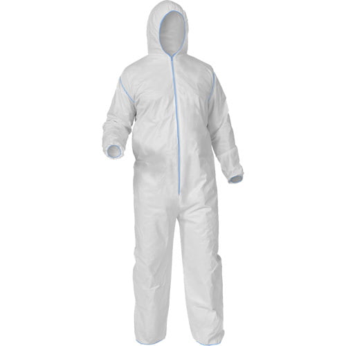 RONCO white microporous protective coveralls. Coveralls are made with a liquid-resistant microporous film that is laminated to a fabric-like polypropylene lining. Abrasion-resistant. Protects against non-hazardous particles, light liquid splash and aerosols in the workplace. Lightweight and comfortable properties allow them to be used in a variety of setting such as hospitals, food processing plants and general industrial applications. Individually wrapped for sanitary purposes.