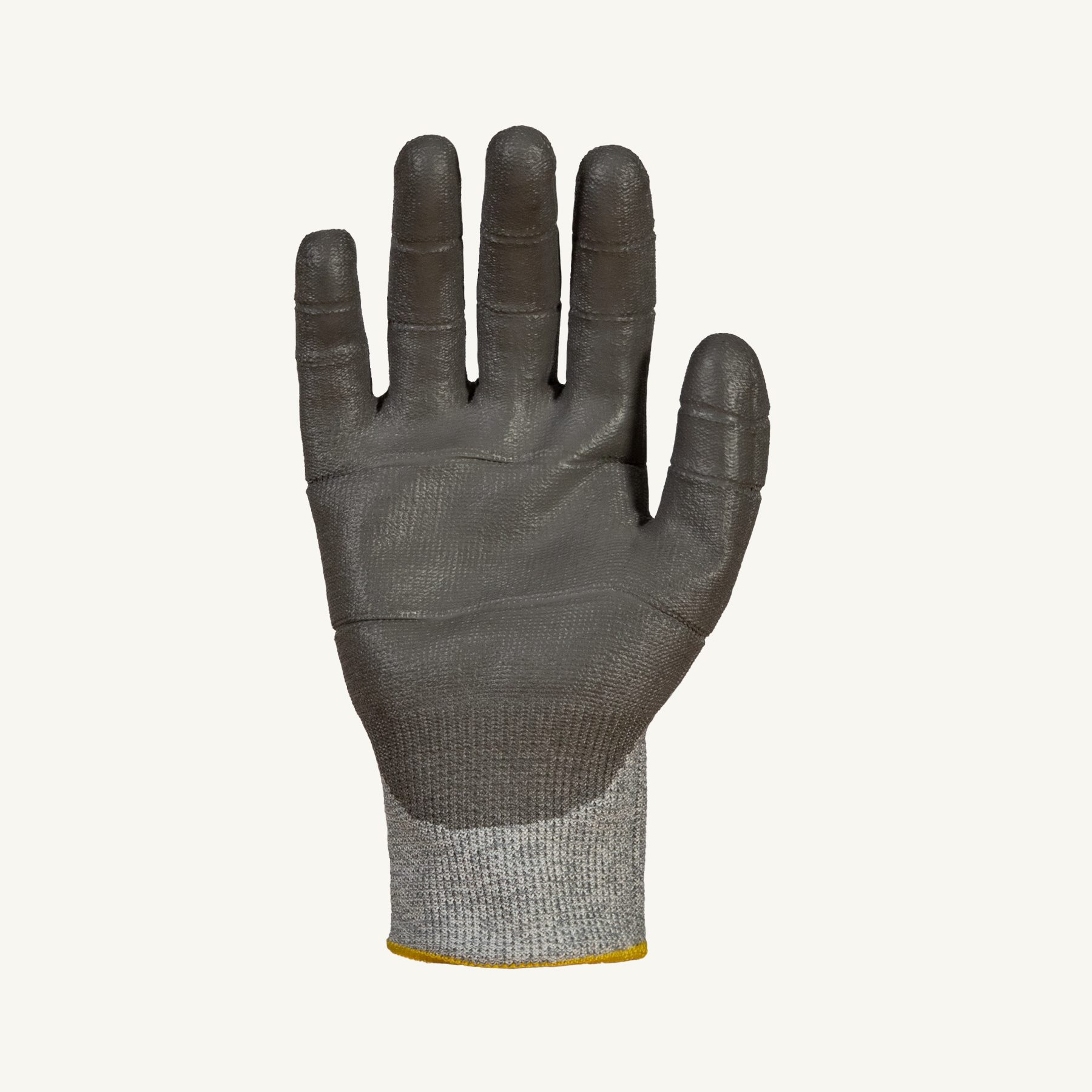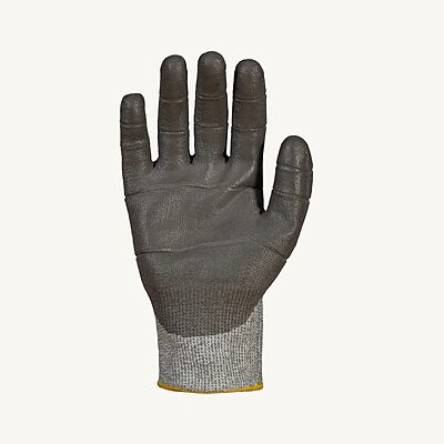 Gloves designed with zones that tear away to avoid hazardous snags in fast-moving rotational equipment. TenActiv™ blended knit shell provides a comfortable, dexterous fit. Tear-away points are a thinner zone of Nylon-Spandex. Polyurethane palm coating provides great grip and excellent tactile feel. ANSI Level A5 Cut resistant.