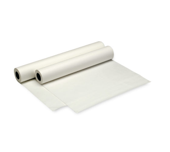 SafeBasics™ examination table paper - 100% secondary fibers, no wax and latex-free. Smooth finish and external side glazed. **12 rolls/case**
