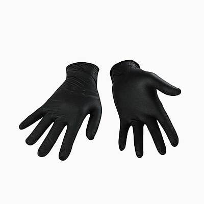 Nitrile 6 mil black disposable gloves. Powder-free glove with a rolled cuff. Excellent oil and grease resistance. Great cut and puncture resistance. Black color hides dirt. Lightly textured for better grip. AQL 4.0 – 100% latex-free.